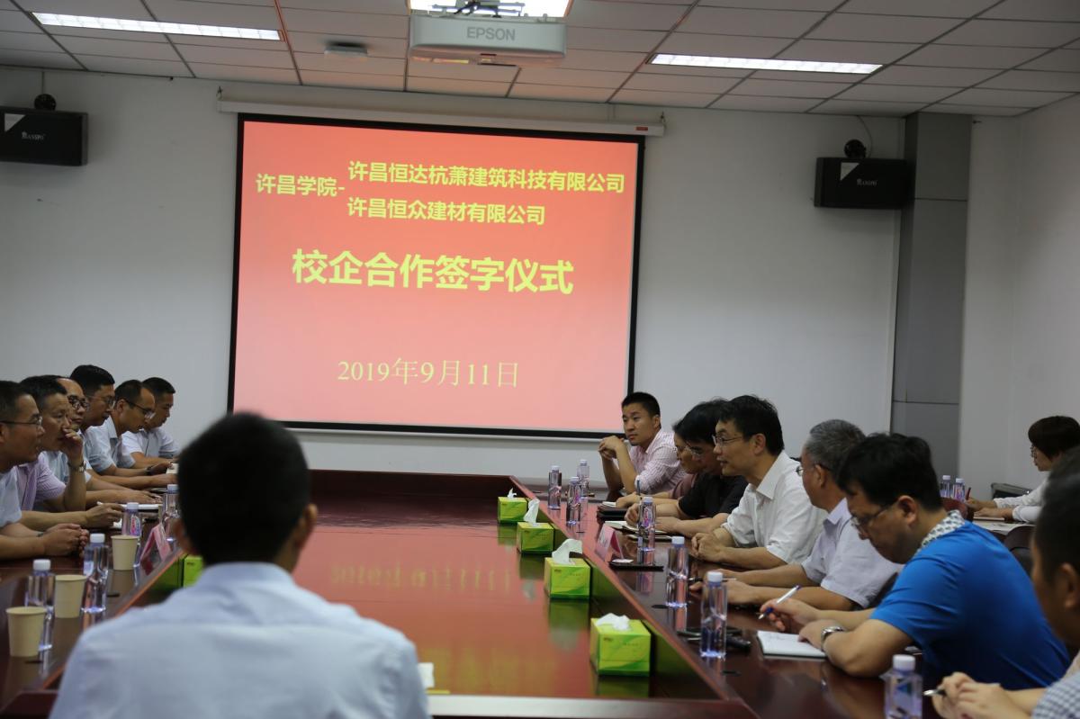 9月11日下午,bet36体育在线与许昌恒达杭萧建筑科技有限公司、许昌恒众建材有限公司校企合作项目签约仪式在办公楼第四会议室举行。副院长郑直出席签约仪式,许昌恒达杭萧建筑科技有限公司、许昌恒众建材有限公司相关负责人,bet36体育在线校地合作办公室相关负责人以及土木工程学院、新材料与能源学院部分教师代表参加了签约仪式。签约仪式由bet36体育在线校地合作办公室主任郭超峰主持。