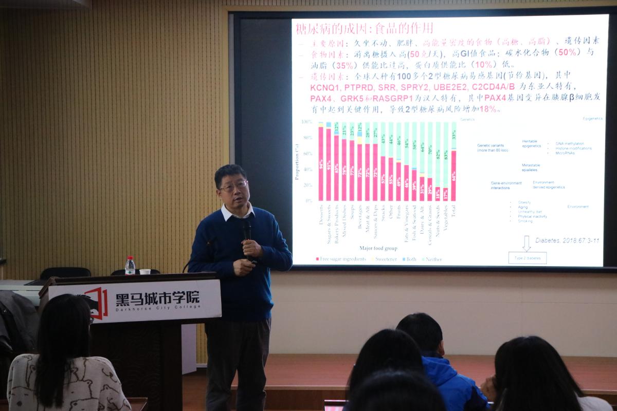 杨晓泉教授是食品领域国际知名专家,进入农业科学ESI全球排名1%,已发表SCI收录论文100多篇,引用超过1600次。杨教授以全球视角向大家介绍195个国家在1990—2017年有关膳食的健康效应跟踪调查结果,表明膳食不合理是引发身体疾病的重要因素。杨教授指出国内高盐高糖的饮食习惯是膳食危机的主要源头,并就降盐降糖的应对策略进行了进一步阐述。杨教授接着分析了新型植物蛋白产品的市场前景,并提出利用新型的植物蛋白产品替代肉制品的新方案。基于食品行业的发展现状以及人民日益增长的对健康生活的需求,杨教授介绍了老人定制食品、3D打印食品及个性化定制食品等新型食品,展望了食品未来远大的发展前景。(图片由食品与生物工程学院提供)