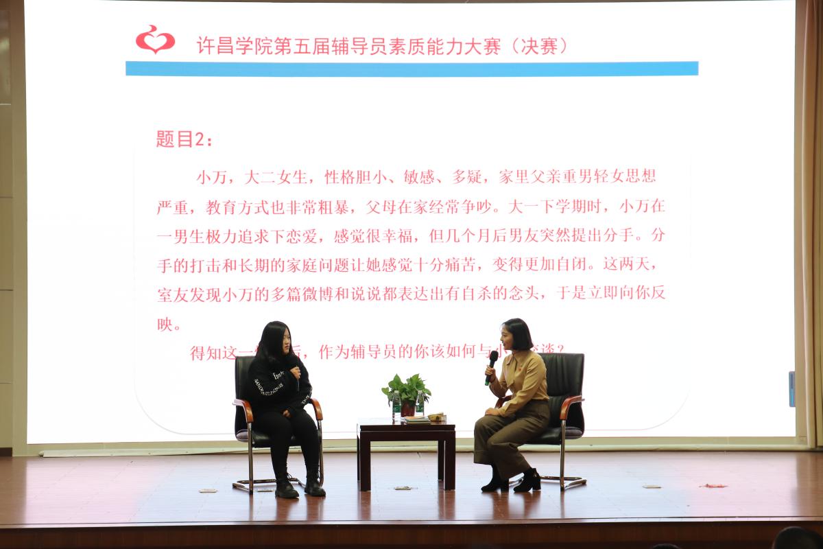 决赛分为谈心谈话和理论宣讲两个环节。谈心谈话环节,参赛辅导员围绕大学生创业、情感问题指导、人际关系处理、心理健康教育等热点难点问题,现场为学生解答困惑;理论宣讲环节,参赛辅导员围绕习近平新时代中国特色社会主义思想、十九届四中全会精神以及《新时代公民道德建设实施纲要》和《新时代爱国主义教育实施纲要》等方面进行了精彩的宣讲。各参赛选手从容沉稳、应对自如,精彩的分析和出色的应变能力将比赛推向一个又一个高潮,赢得了观众们的阵阵掌声。党委统战部部长王林、马克思主义学院院长寇鸿顺对比赛进行了精彩点评。