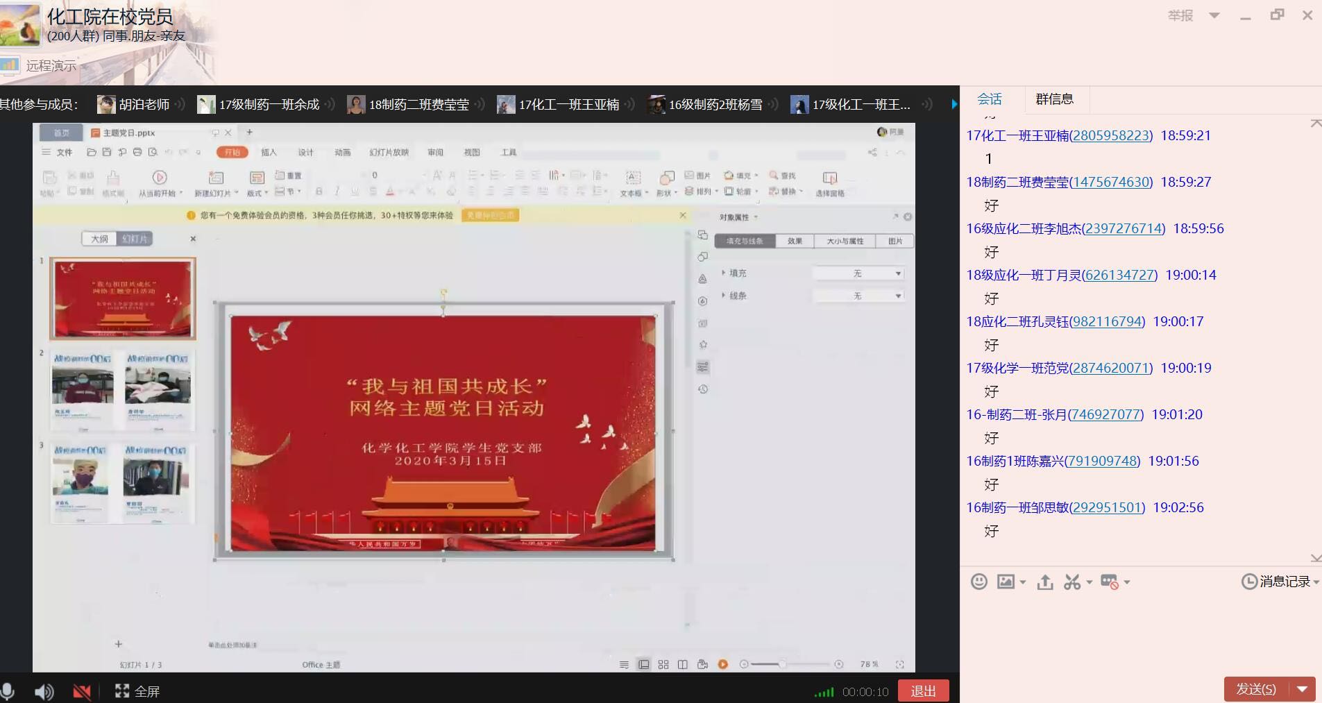 活动中,广大基层党支部书记借助“学习强国”等网络平台,切实发挥教育引领作用,通过主题宣讲、微党课、观看视频、案例分析、分享交流、主题征文等多种形式,深入开展主题党日活动。在活动内容上,各基层党支部紧扣主题,联系实际,注重加强对学生党员的理想信念教育、党性教育、生命教育、科学教育、道德教育,弘扬爱国主义主旋律。