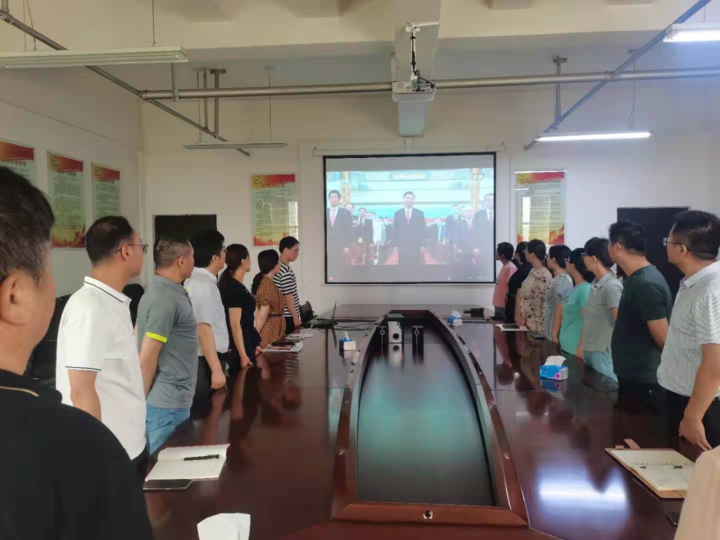 校级领导闫纪建、孙海、郑直、黄怡俐、周新峰、高金星、潘春彩和机关党委党员干部在办公楼第三会议室集中收看实况直播。各基层党委、直属党支部组织师生员工分别利用网络、广播、电视、新闻客户端等多种形式认真收听收看颁奖仪式,聆听习近平总书记发表的重要讲话。