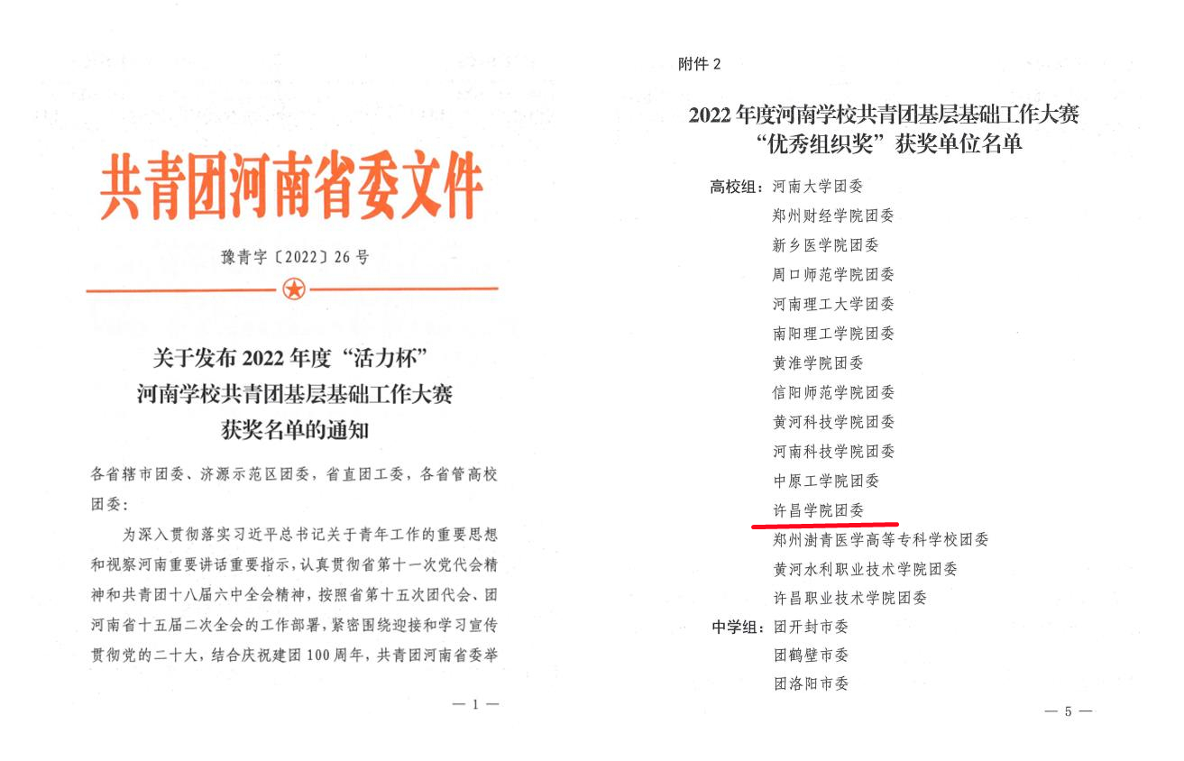 近日,2022年度“活力杯”河南高校共青团基层基础工作大赛在郑州举办。bet36体育在线在共青团工作项目、基层团干部微团课等比赛中再创佳绩,并荣获“优秀组织奖”。