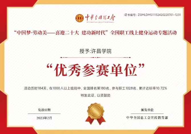 近日,中华全国总工会公布了“中国梦·劳动美——喜迎二十大 建功新时代”全国职工线上健身运动专题活动获奖名单,bet36体育在线被授予“优秀参赛单位”。