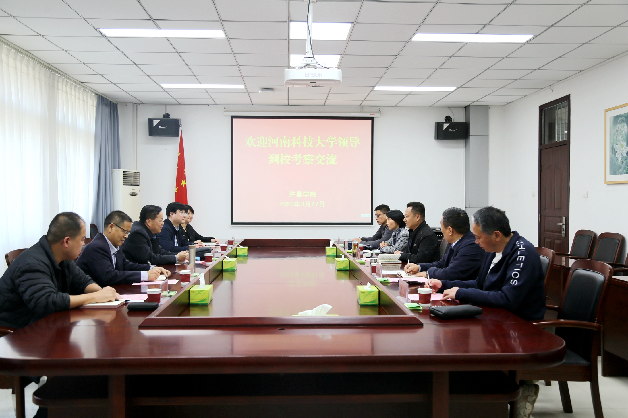 3月27日下午,河南科技大学党委副书记孟伟一行5人来bet36体育在线考察交流。bet36体育在线党委书记郭涛、党委副书记孙海在办公楼贵宾室会见了孟伟一行。副院长潘春彩陪同考察。