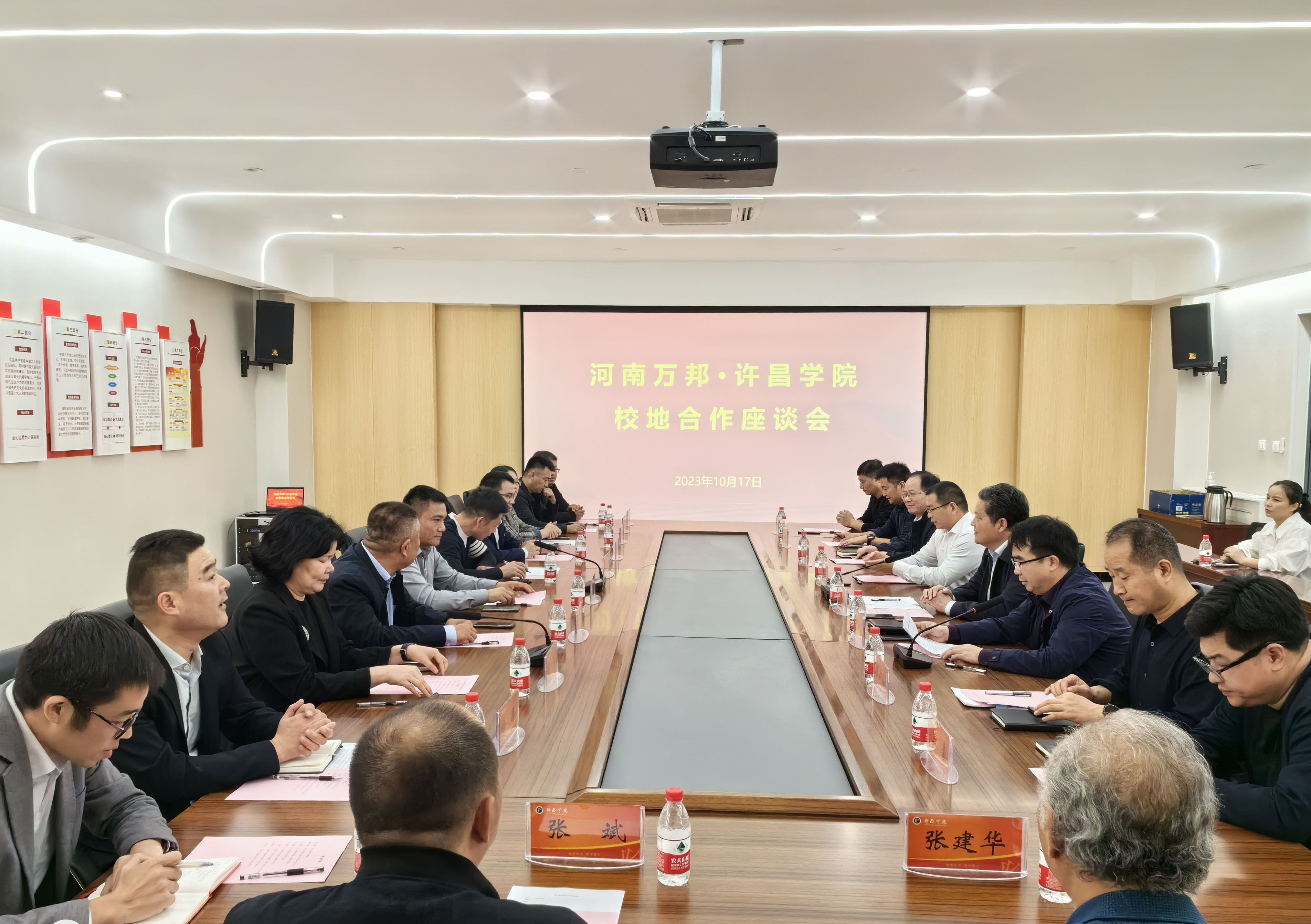 10月17日下午,河南万邦集团农产品配送服务有限公司总经理张伟、武汉大学科技园企业服务中心主任刘坤,北京外企人力资源服务河南有限公司毛中原等一行8人到bet36体育在线考察交流。bet36体育在线在保卫处二楼会议室举行座谈会。副校长高金星出席座谈会。座谈会由校地合作办公室主任郭超峰主持。