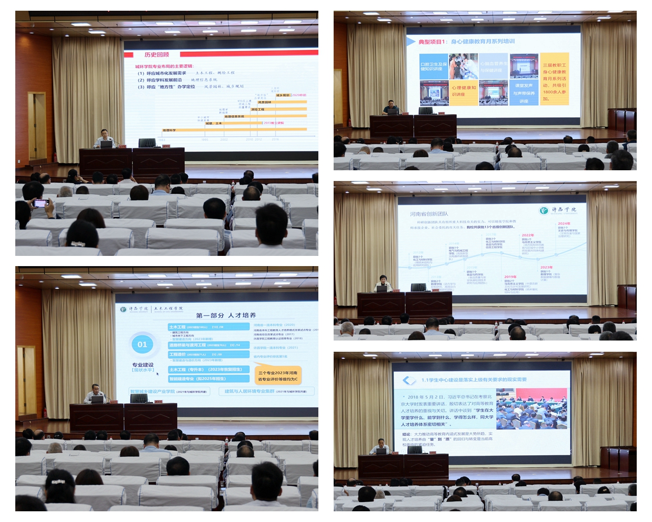 报告会上,发展规划处处长袁胜元、土木工程学院院长杜书廷、教师中心主任刘其涛、科研处处长赵艳敏、学生中心主任周银超分别以《“经纬达观 博学致新”——地理与空间信息学院学科专业特色凝练:现状、问题与思路》《立足实际 精准发力 全力提升土木工程学科专业建设水平》《提升服务质效 助力教师成长——教师中心建设情况汇报》《亮家底?找差距?明方向?提效能——以有组织科研助推学校高质量发展》《聚焦学生学习发展支持 推动人才培养提质增效——学生中心建设的思考与实践》为题,围绕学科专业和课程建设、高质量科研工作、教师中心和学生中心的建设与发展等作了主题交流发言,梳理了工作现状、查找了存在的问题与不足,深入系统谋划了今后的工作。