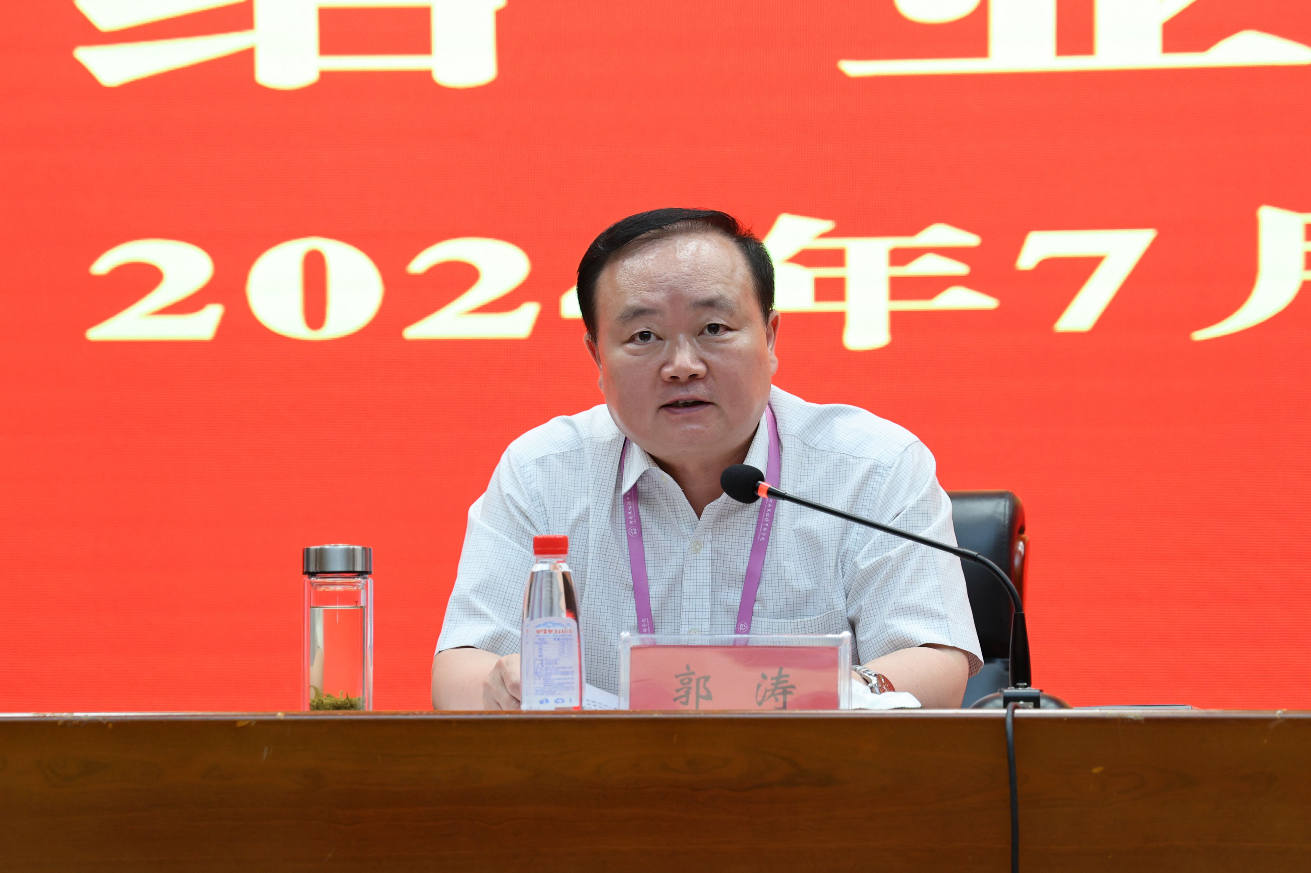 郭涛在会上讲话。他指出,这次培训是在学校深入贯彻落实教育强省战略部署、扎实开展党纪学习教育、加快推进学校事业高质量发展之际,举办的一次承前启后、具有重要意义的培训。培训班内容丰富、重点突出、形式多样,达到了预期效果。