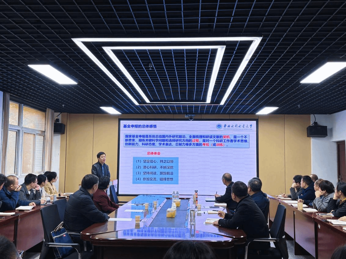 会上,华北水利水电大学赵荣钦教授以《国家自然科学基金申报的注意要点》为题作辅导报告。他结合申报国家自然科学基金的经历,系统梳理了从选题凝练、立项依据、研究内容、技术路线到可行性分析等关键环节的撰写要点与常见误区。结合自身在“水—能—碳”耦合研究方面的实践案例,展示了如何将理论问题与现实需求相结合,为相关研究方向教师提供了宝贵借鉴。(图片由地理与空间信息学院提供