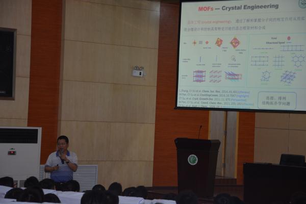 报告会上,苏成勇教授介绍了配位超分子化学这一研究热点及其课题组近年来在纳米分子容器与反应器的合成和性质研究方面的优秀成果。苏教授从配位超分子化学的基础知识、配位超分子的自组装原理以及配位超分子在催化、纳米反应容器、光电、手性拆分等性质方面对配位超分子化学进行了较详细的讲述。龙腊生教授介绍了铁电材料的一些基本性质和特点,对铁电材料在电、磁、力、热及光等领域的应用前景进行了讲述。龙教授还介绍了其课题组近年来在合成有机铁电体、