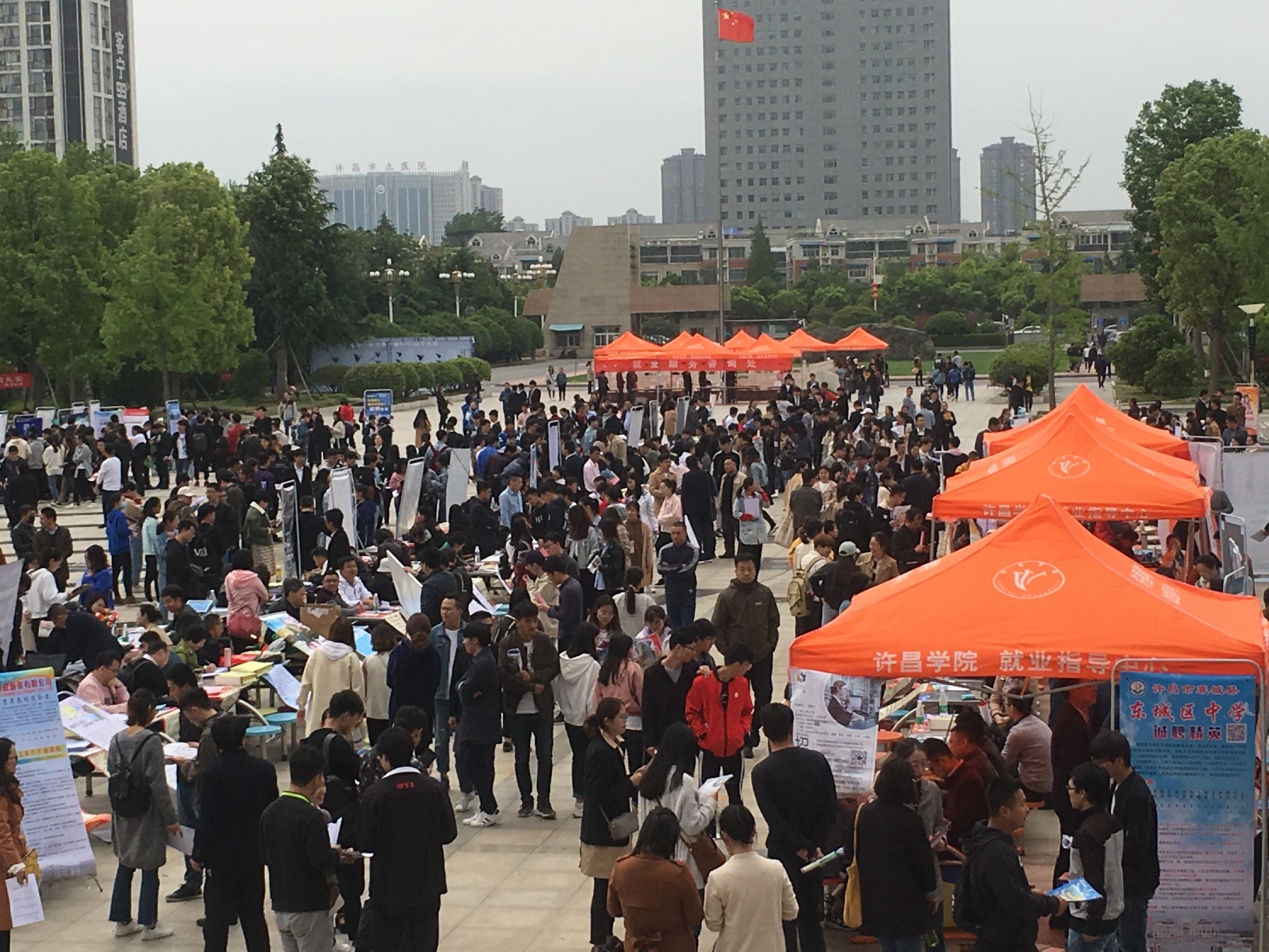 4月25日,由许昌市人力资源和社会保障局和bet36体育在线联合举办的许昌市2019届高校毕业生春季供需洽谈会在bet36体育在线弘毅广场举行。