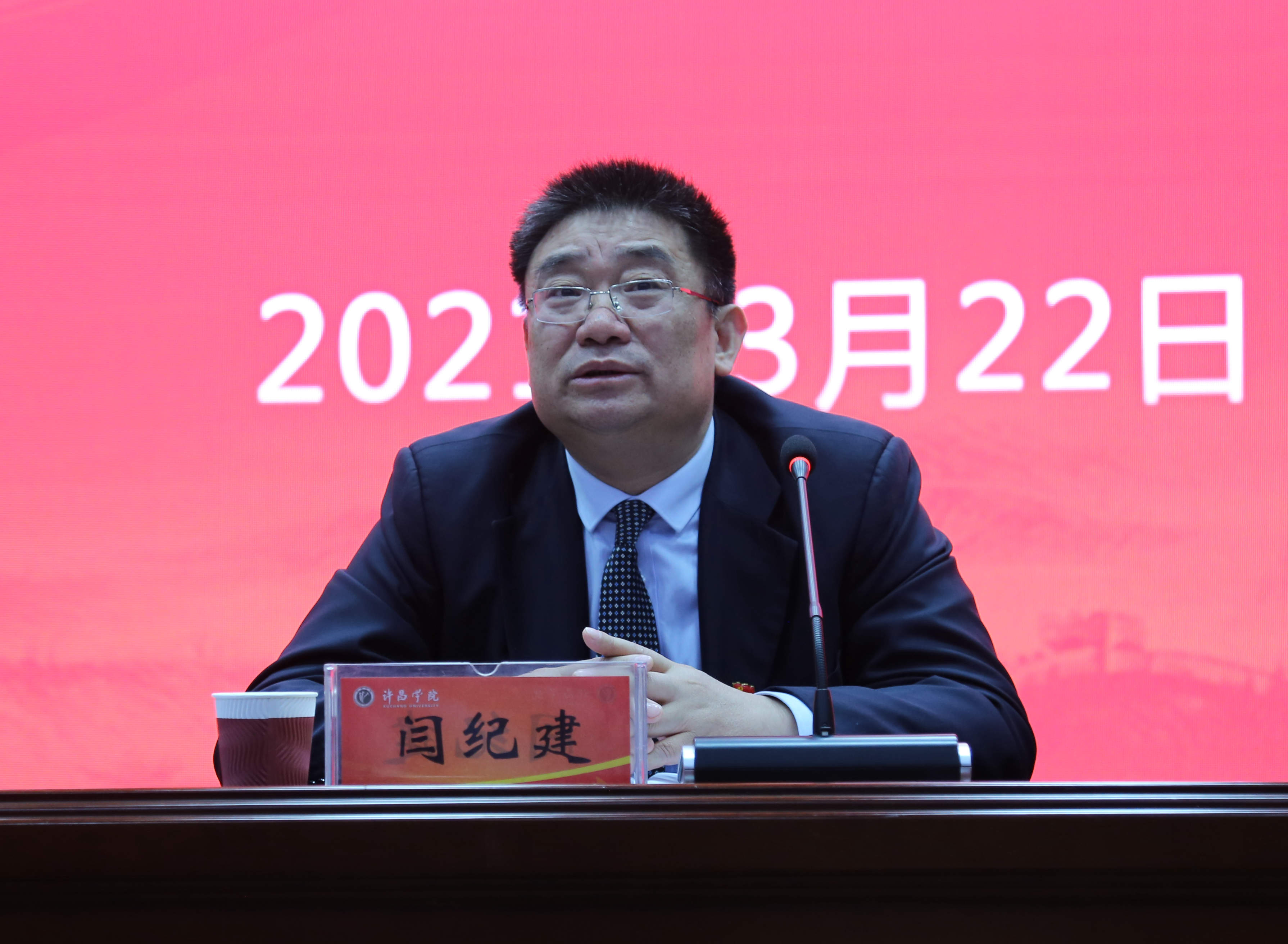 会上,闫纪建书记全面阐释了开展党史学习教育的重大意义,围绕抓实抓细党史学习教育提出了具体要求。闫纪建指出,开展党史学习教育,意义重大,影响深远。2021年是学校“十四五”事业发展的开局之年,也是学校抢抓机遇、乘势而上、攻坚克难、转型提质,建设高水平应用型大学的关键之年,希望同志们以开展党史学习教育为契机,抢抓机遇、狠抓落实、勇于担当、奋力攻坚,为学校“十四五”事业发展开好局、起好步,以优异成绩庆祝建党100周年。