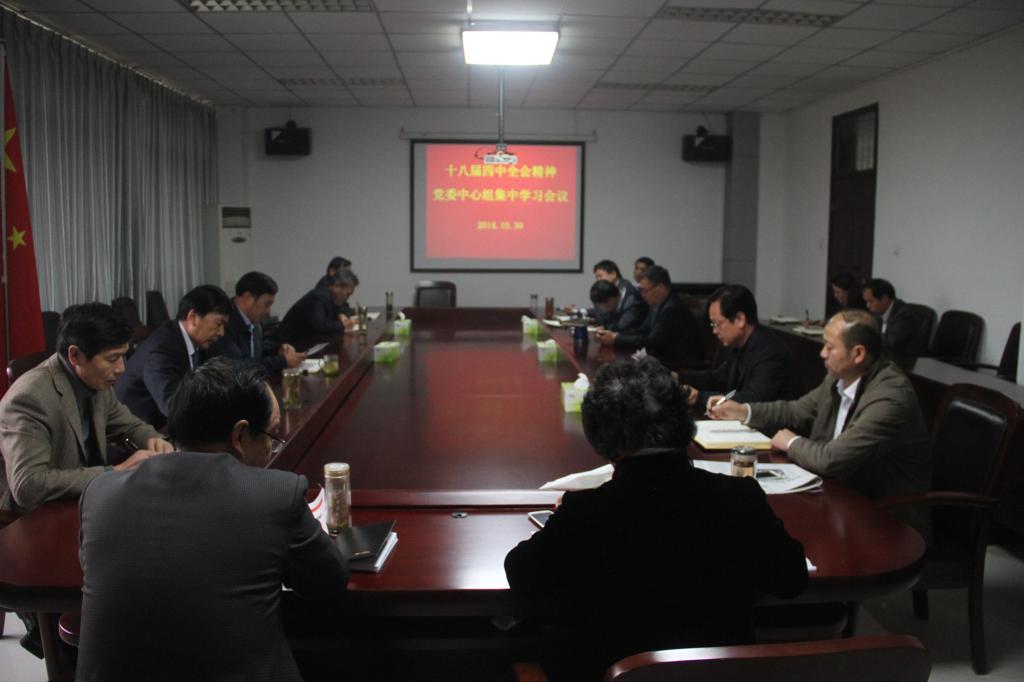 会上,党委副书记马超传达领学了《中共中央关于全面推进依法治国若干重大问题的决定》精神。纪委书记罗凤英传达领学了王岐山在十八届中央纪委四次全会上的讲话。最后,与会人员观看了中共中央党校刘春教授的专题辅导报告录像。