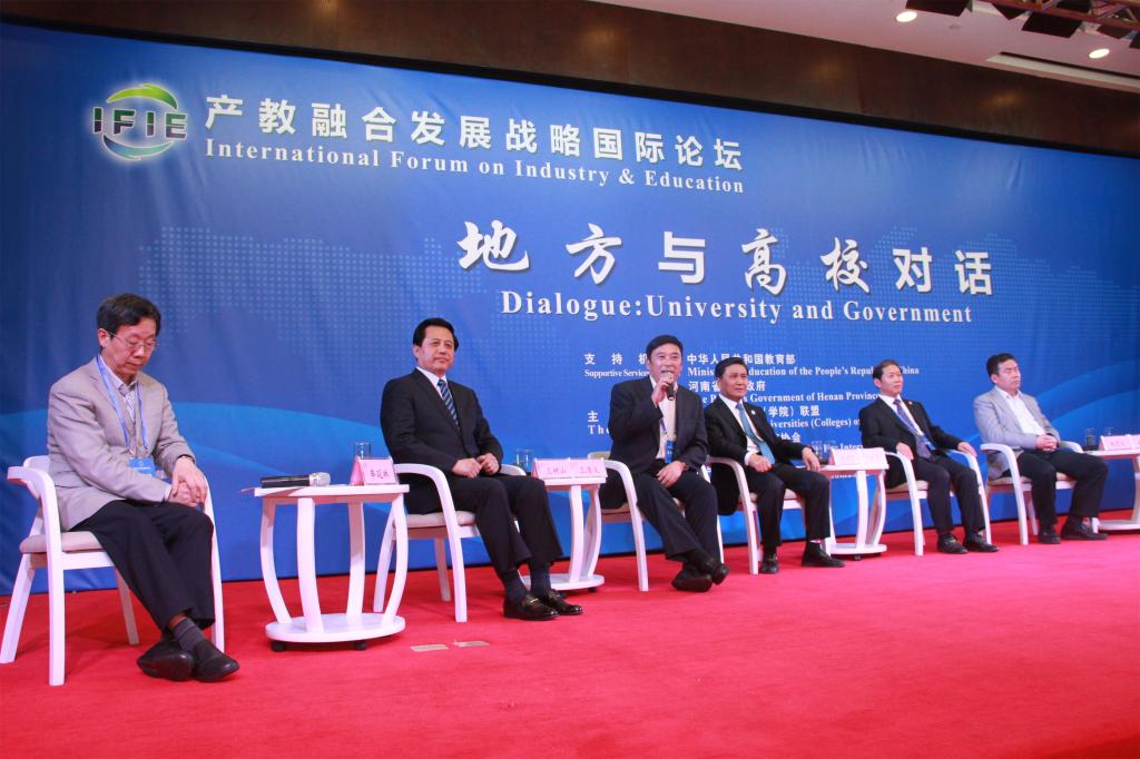 据悉,本次产教融合发展战略国际论坛,是中国应用技术大学(学院)联盟的第一次论坛,教育部副部长鲁昕,河南省人民政府副省长徐济超,中国教育国际交流协会秘书长邵巍,河南省高校工委书记、省教育厅厅长朱清孟,应用技术大学联盟理事长、天津职业技术师范大学党委书记孟庆国等领导出席了开幕式,共有180多所国内外高校参加了本次论坛。在一天半的日程中,论坛讨论了高等教育结构的战略性调整、中国高校的转型发展之路、国外应用技术大学的发展经验、地方政府和地方高校的合作、新技术革命对教育的挑战等热点问题。论坛以后每年定期召开,将对加快地方高校教育教学改革和培养高素质技术技能人才,起到积极的推动作用。(摄影:王军平)