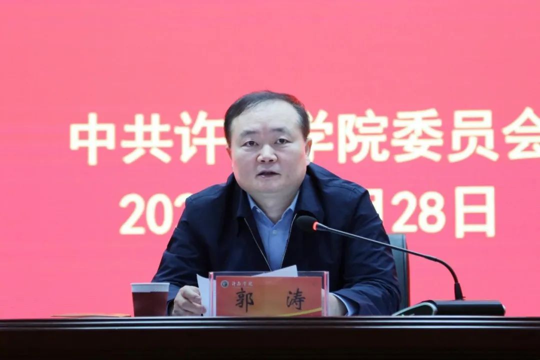 就如何学习宣传贯彻好党的二十大精神,确保落实到位、见质见效,郭涛提出五点要求。一是要提高政治站位,持续深化党的二十大精神的学习宣传贯彻。要紧密结合学校实际,研究制定学习宣传贯彻党的二十大精神工作方案,精心组织,周密安排,坚持全面系统学、创新方式学、联系实际学,迅速在全校掀起学习宣传贯彻党的二十大精神的热潮。二是要牢记育人使命,不断强化党对学校工作的全面领导。要始终坚持社会主义办学方向,全面贯彻党的教育方针,认真落实党委领导下的校长负责制,以党建高质量引领学校事业发展高质量。三是要用党的创新理论凝心铸魂,全面落实立德树人根本任务。要把学习党的二十大精神作为学校思想政治教育和课堂教学的重要内容,切实抓好党的二十大精神进教材、进课堂、进头脑工作,把立德树人融入思想道德教育、文化知识教育、社会实践教育各环节。四是要重点做好“转化”文章,持续推动学校内涵提升。要把学习贯彻党的二十大精神与加快推进高水平应用型大学建设紧密结合起来,重点聚焦“办学特色凝练、办学层次提升、办学空间拓展”三大攻坚任务,不断激发办学内生动力和活力,切实把学习成果转化为推进学校改革发展的强大动力和生动实践。五是要牢牢把握新时代新征程使命任务,不断增强学校服务地方经济社会区域发展的能力和水平。要树立更加鲜明的服务区域经济社会发展导向,进一步深化校地合作、产教融合,努力为服务地方经济社会发展作出更大贡献。
