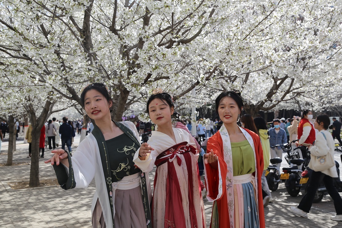 “漫漫樱花路,翩然雪絮中”,又是一年樱花烂漫的时节。2023年3月13日,河南省bet36体育在线第五届樱花文化节上,“华夏霓裳”汉服展示、“樱邀赴约”国潮集市、“樱香雅韵”茶艺表演等一系列特色文化活动,为樱花节增添了青春校园和大学文化独有的香味和品味。孙旭涛 摄