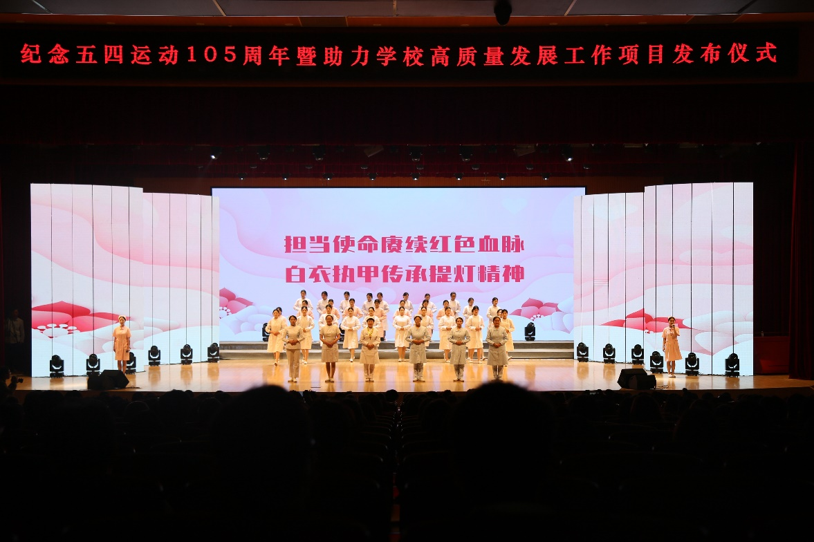 发布仪式上,“明灯计划”大学生思想引领行动、“繁星计划”共青团实践育人提质行动、“千帆计划”大学生创新创业能力提升行动、“花漾计划”校园文化活动精品项目建设行动等四个助力学校高质量发展的工作项目依次发布。情景剧《那束光》展现了新时代青年护士“燃烧自己,照亮别人”践行救死扶伤的青春承诺;歌伴舞《奉献》表达了新时代青年弘扬和传承“大别山精神、红旗渠精神、焦裕禄精神”的坚定信念;情景剧《青年说》彰显了新时代青年传承五四精神,立志在强国建设、民族复兴征程中奋勇争先、更加出彩的坚定信心。