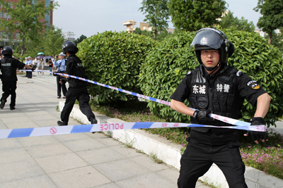 ????????????????????????????????????????全副武装的特警赶赴事发现场。