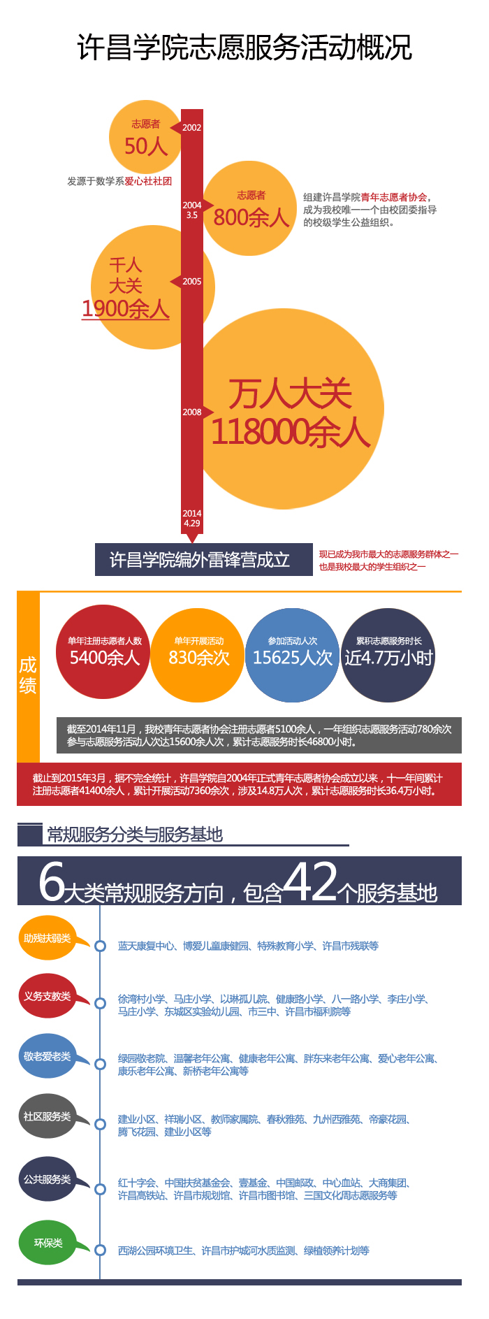 据不完全统计,自2004年至今十一年间,bet36体育在线累计注册志愿者41400余人,累计开展活动7360余次,涉及14.8万人次,累计志愿服务时长36.4万小时。