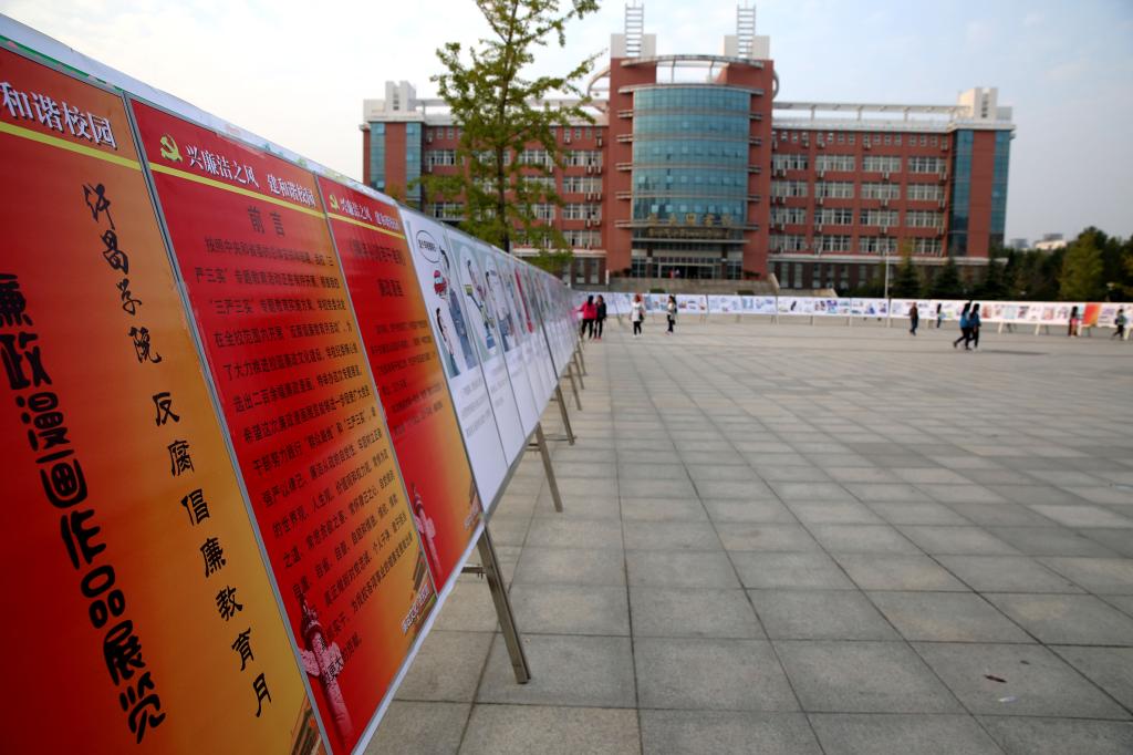10月13日,由校纪委主办的bet36体育在线廉政漫画展览在弘毅广场开展。当天下午,校党委副书记、院长赵继红,党委副书记马超,副院长赵正风、崔斌、黄怡俐,纪委书记罗凤英,工会主席杜志傲等前往参观。