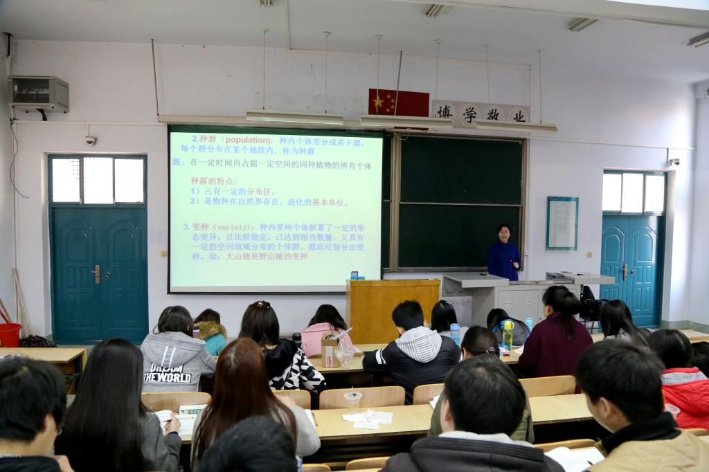 这节课上,她给同学们提出了课程学习的两个目标:“一是夯实基础,二是灵活运用。”她说:“《植物地理学》是一门实践性比较强的课程,为了更好的培养学生的应用实践能力,新学期她还会亲自带领同学们进行‘公园现场教学’、‘野外实习’等等,用‘发现’的教学方法,让同学们自己去发现,进行理论的修正与思维的归纳。”从董老师身上,我们看到了老教师们严谨治学的态度和与时俱进的创造力。