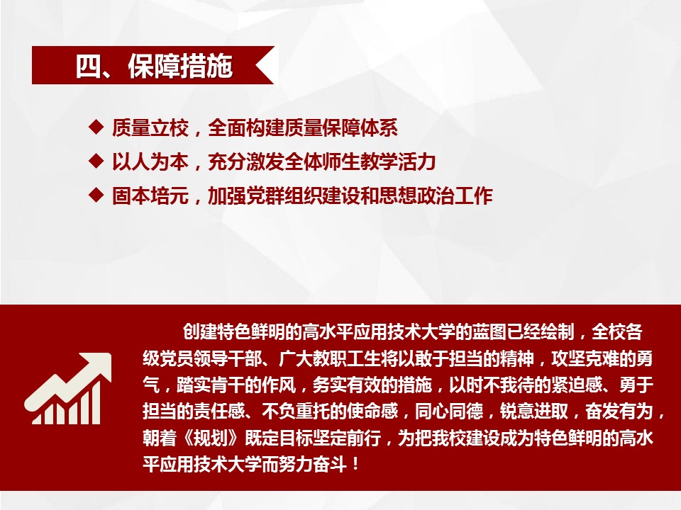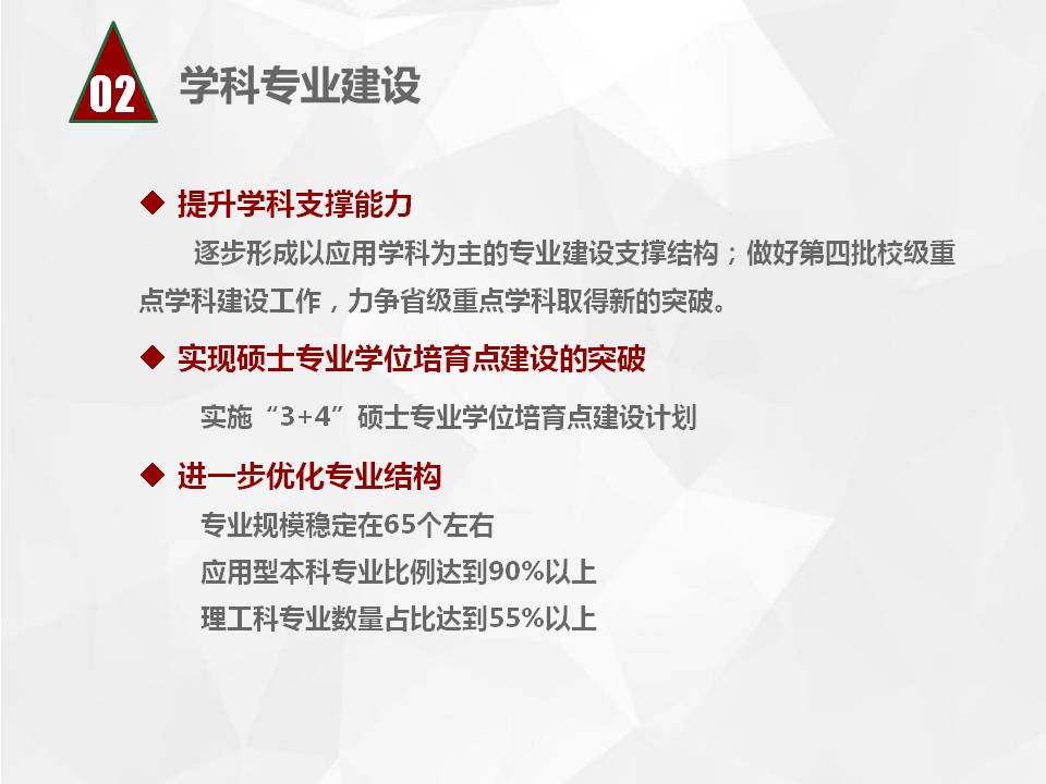 bet36体育在线2016-2020年事业发展规划共三大部分,一是《bet36体育在线事业发展规划(2016-2020年)》(以下简称“总规划”),二是《人才培养与教育教学规划》《教师与干部队伍建设规划》《学科专业建设与科技产业规划》《校园文化与学生工作规划》《对外合作与交流规划》《管理机制与资源保障规划》等6个分规划,三是各二级学院事业发展规划(共25个)。