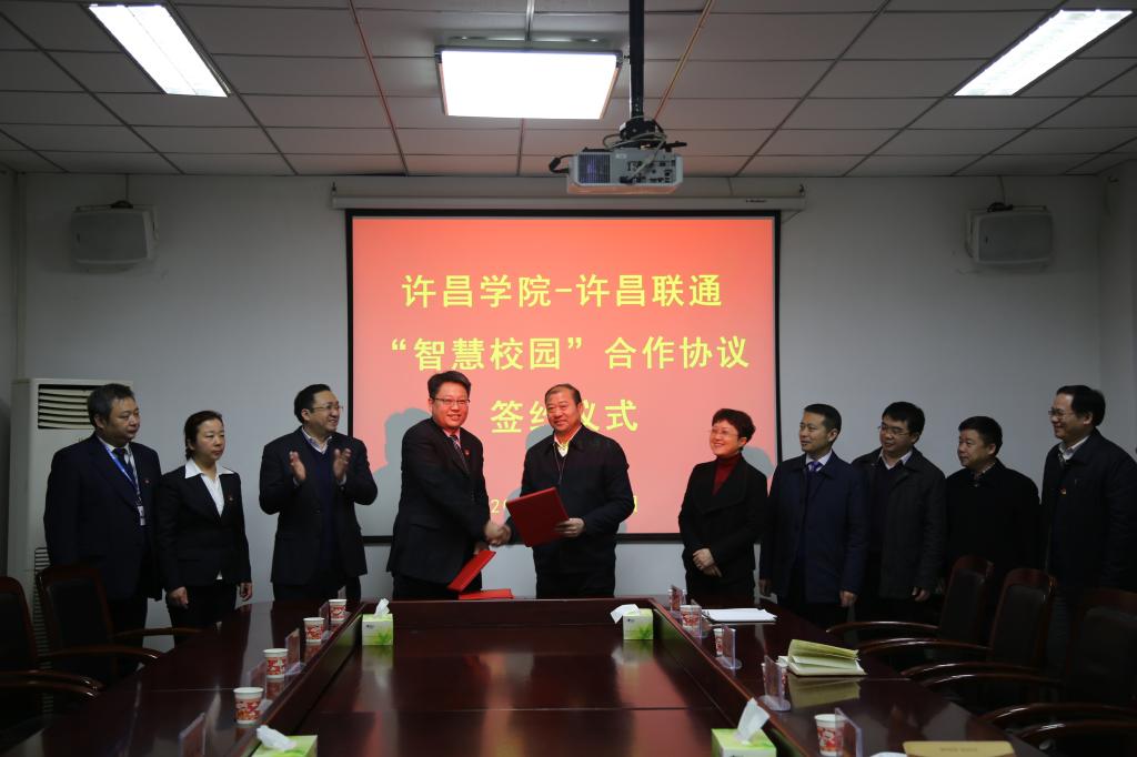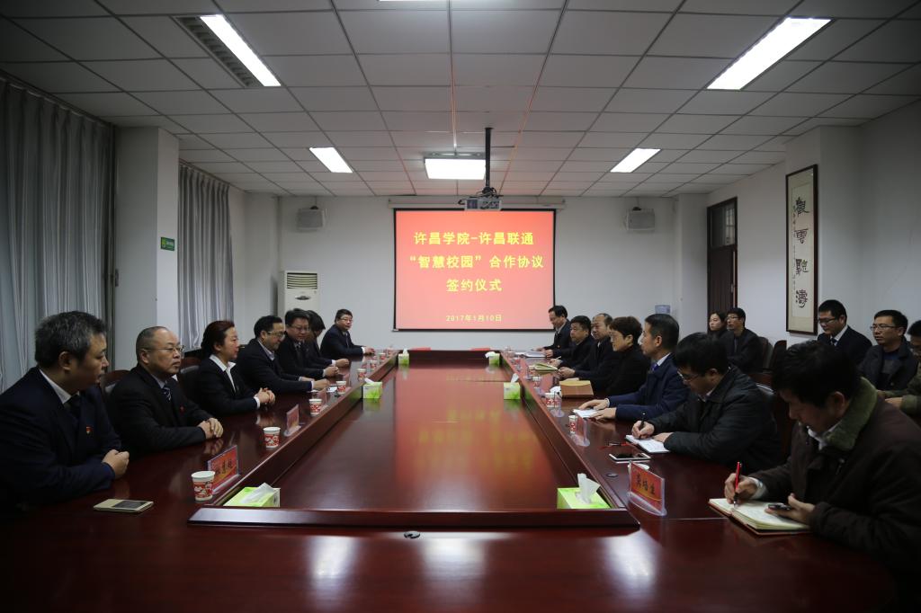 1月10日上午,bet36体育在线与许昌联通公司“智慧校园”建设合作协议签约仪式在办公楼第一会议室举行。院长赵继红、许昌联通公司总经理朱焰天出席仪式,副院长崔斌、许昌联通公司副总经理孔克克、贺海青以及学校和许昌联通公司相关部门负责同志参加签约仪式。签约仪式由院长助理兼院长办公室主任陈遂德主持。