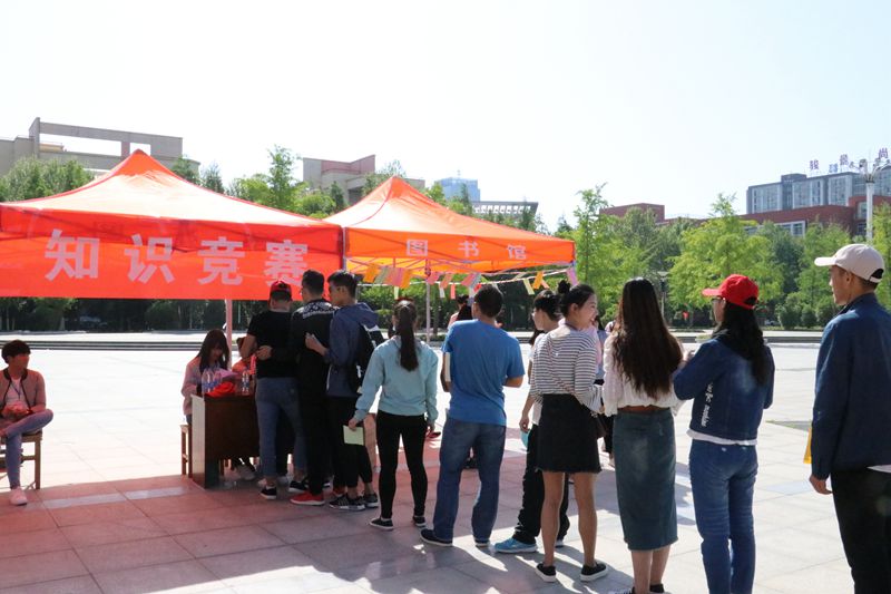 上午9点半,弘毅广场东侧,遮阳伞下五颜六色带有试题的彩色纸条随风飘扬,备受广大同学欢迎的知识竞赛活动在轻松愉悦的氛围中开始了。今年的知识竞赛题目范围除包含图书馆的基本概况、书刊组织、检索与借阅流程、电子资源使用与读者服务等内容之外,还增加了诗词常识类的问题,以提高同学们的参与兴趣。每位同学只需从悬挂的50道题目中自由选择并回答一道题,经老师确认答案正确后,即可领取一份小礼品。许多同学表示,以“猜灯谜”形式举办的知识竞赛活动形式灵活新颖,充满了知识性与趣味性,如果明年还举办此类活动,他们还会继续参加。