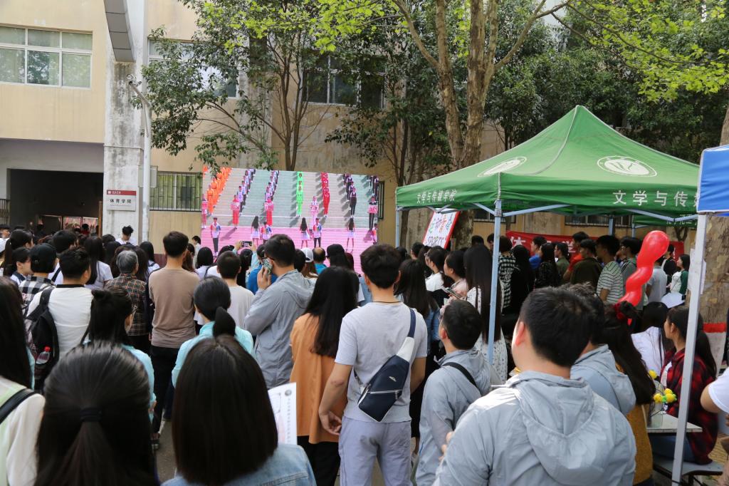 在网络直播的同时,学校弘毅广场、羽飞田径场外大屏幕也进行了同步直播,吸引了众多师生围观。