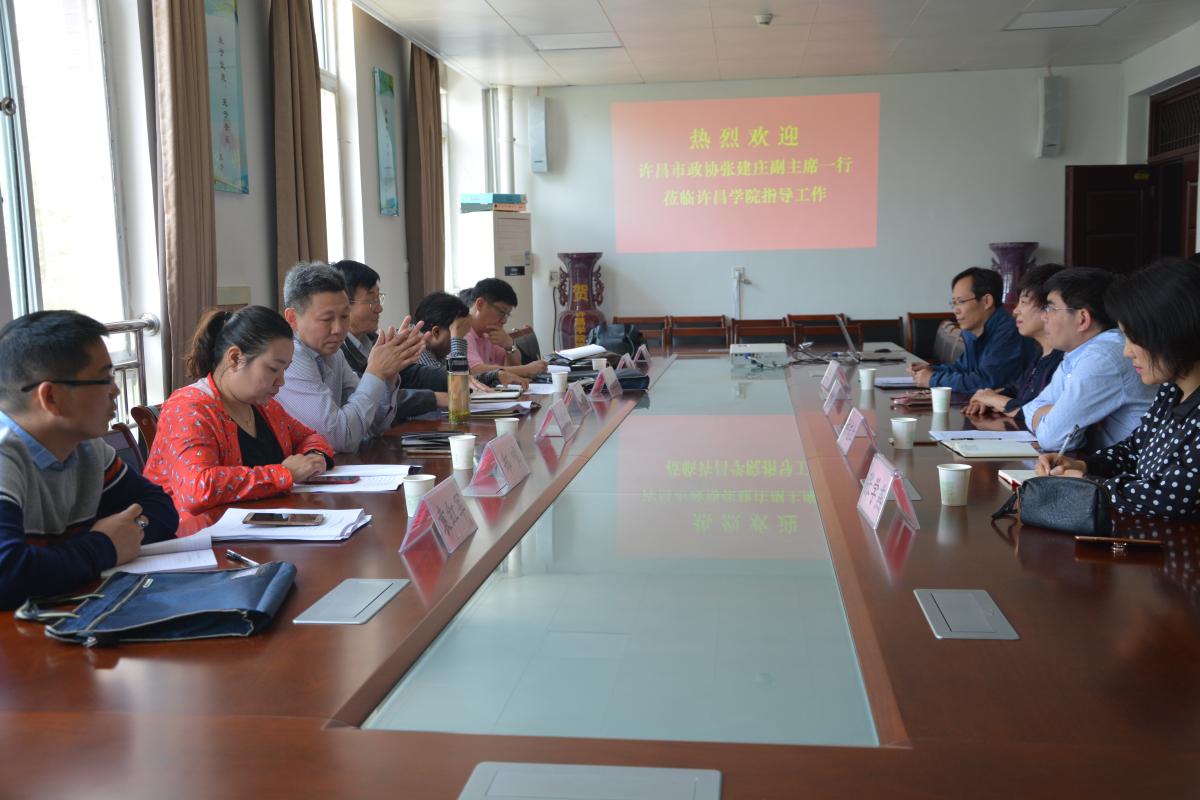 4月27日,许昌市政协副主席张建庄以及市工信委、市食品药品监督局等单位相关人员一行9人到bet36体育在线调研交流,就bet36体育在线药物研发平台建设及产学研情况进行调查走访。bet36体育在线在化学化工学院三楼会议室召开座谈交流会,校纪委书记罗凤英出席会议,化学化工学院相关负责人、教师代表参加了座谈。