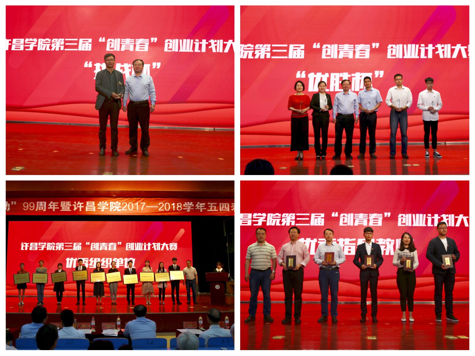 与会领导为2018年“创出彩‘创青春’大学生创业大赛”先进集体和个人颁奖