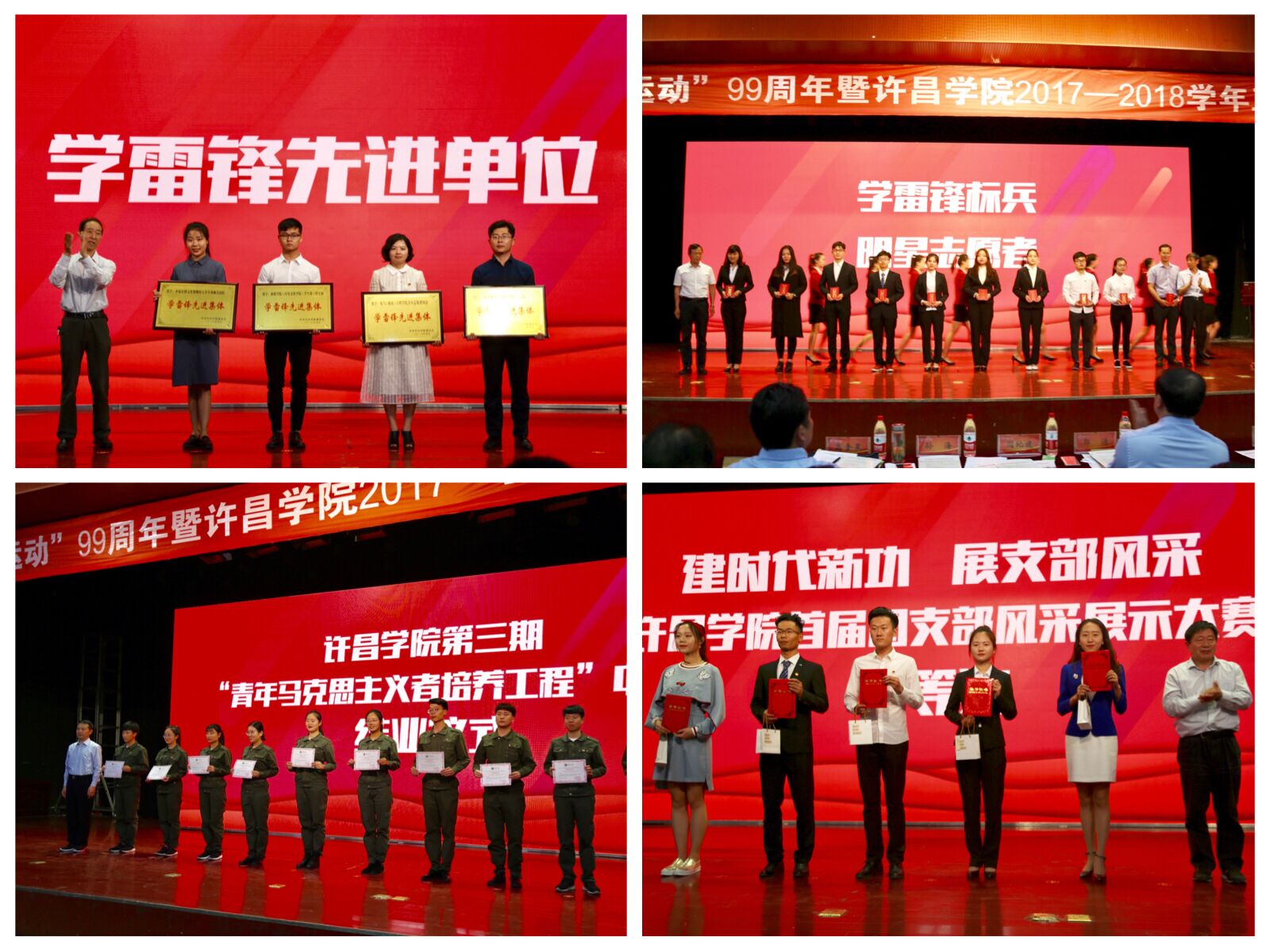 与会领导为学雷锋先进个人和单位、首届团支部风采有展示大赛获奖者、“青马工程”学员颁发奖励和证书
