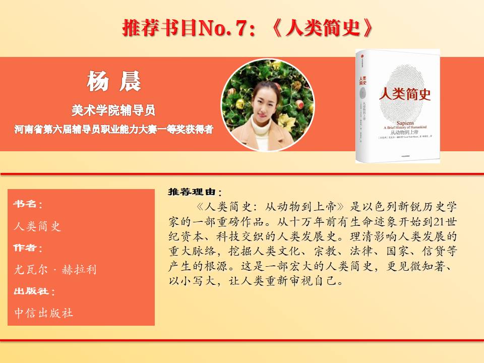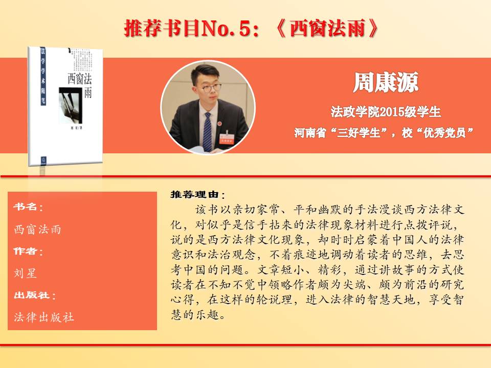 【编者按】为进一步激发全校师生爱读书、会读书、读好书的浓厚兴趣,努力营造书香校园的良好氛围,校党委宣传部(新闻中心)今年继续策划推出荐书专题活动。本期“师长荐书”和“学长学姐荐书”专题活动,特别邀请8位教师和8位同学精心推荐图书16本,在学校官方网站、官微等平台同步推送,敬请关注。