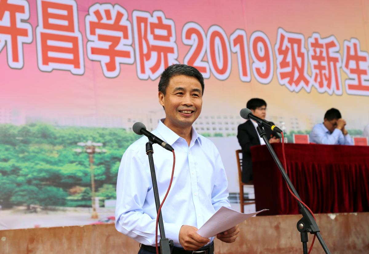 院长岳修峰在仪式上讲话。他代表学校向2019级新同学表示热烈的欢迎,向关心支持bet36体育在线军训工作的许昌军分区首长和全体教官致以诚挚的敬意,对同学们圆满完成军训任务表示衷心的祝贺。
