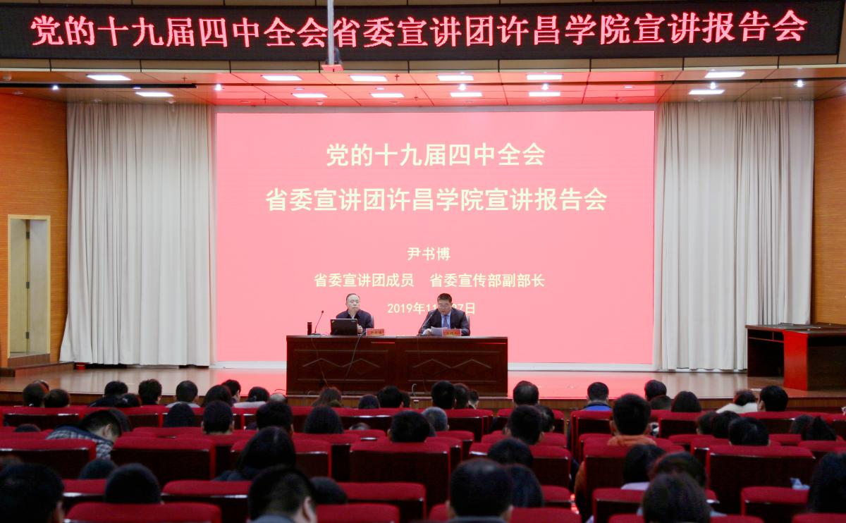 闫纪建书记在主持会议时指出,全校教职工生要深入学习宣传贯彻党的十九届四中全会精神,深刻把握十九届四中全会的重大意义和核心要义。全校各级党组织要把学习贯彻党的十九届四中全会精神作为当前和今后一个时期的重大政治任务,列为“不忘初心、牢记使命”主题教育一项重要学习内容,切实把广大干部师生的思想和行动统一到全会精神上来。要把学习贯彻党的十九届四中全会精神与学习习近平总书记考察调研河南时重要讲话精神紧密结合起来,与学习贯彻习近平总书记关于教育重要论述结合起来,与“不忘初心、牢记使命”主题教育结合起来,与贯彻落实全国全省教育大会精神结合起来,与省委最新要求和部署结合起来,统筹谋划,一体推进,大力推进学校治理体系和治理能力的全面提升。(图文 宁智沛 学生记者 胡明媚)
