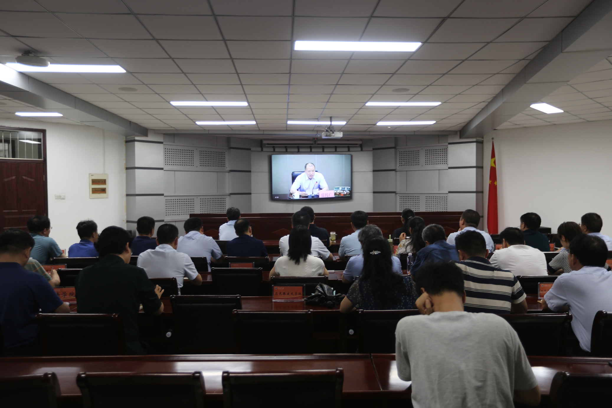 bet36体育在线党委办公室、院长办公室、党委统战部、党委教师工作部(人事处)、党委学生工作部、党委保卫部、教务处、校团委、基建管理处、后勤管理服务中心、图书馆(档案馆)、实验室与设备管理中心、信息化管理中心负责人,以及各二级学院主要负责同志参加视频会议。(摄影:岳凯声)