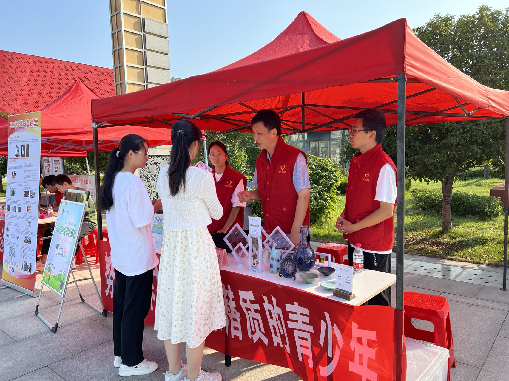 活动过程中,化工与材料学院教师及纳米社志愿者通过实物展示、现场讲解等方式展示了材料科学、化学化工领域最新研究成果,用通俗的语言向群众讲解了新材料及纳米技术在日常生活、工业生产中的具体研究过程及应用,获得了现场参观群众的广泛好评。数理学院通过发放生动活泼、通俗易懂的数学科普读物向儿童、青少年和群众介绍了几何模型以及其发展历程,将科学性与趣味性融为一体,激发了小朋友们学习科学的热情。