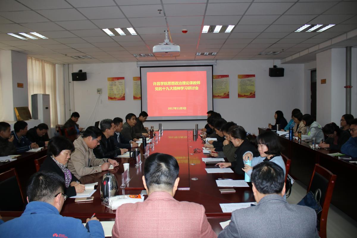 会上,马克思主义学院院长寇鸿顺做了学习宣传贯彻党的十九大精神的表态发言。周耀宏、马洪伟、吴德慧、李家祥、巴文泽、谢永鑫、陈会娟、慕旗娟等八位思想政治理论课教师就学习十九大精神的心得体会以及十九大精神“进头脑”有关教学设想做了典型发言。(图片由马克思主义学院提供)
